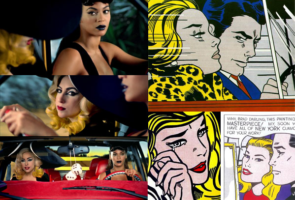 Aujoud’hui, c’est au tour de Lady Gaga de passer au filtre « pop ». Son dernier clip emprunte les codes de l’artiste Roy Lichtenstein et Andy Warhol. Des couleurs très vives, un traitement B.D, des bulles de textes…