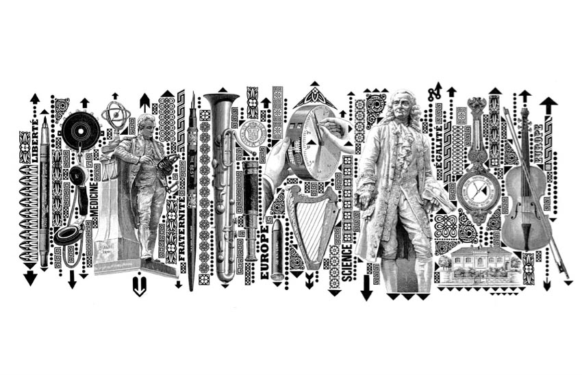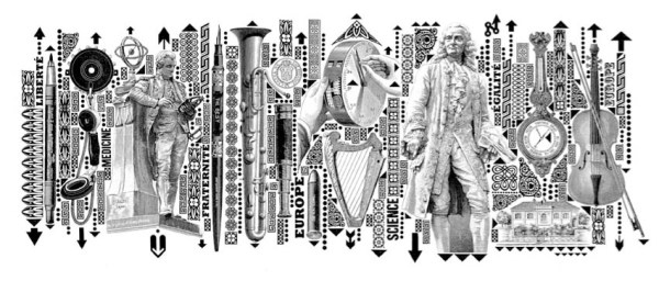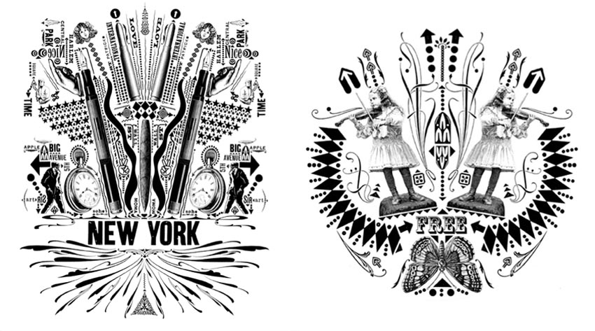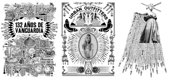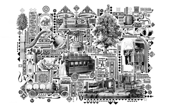 Pour servir de matière première à ses collages, Lorenzo Petrantoni récupère gravures et motifs provenant de livres anciens.