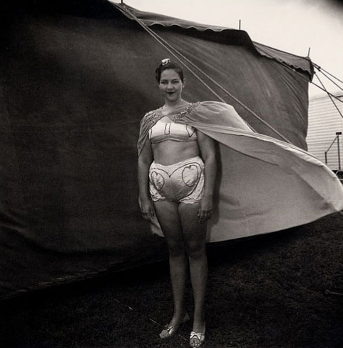 Elle concentre son activité à New York et ses alentours, photographiant des inconnus dans la rue. Fascinée par les personnages hors-normes, elle photographie également des travestis, des handicapés mentaux, des jumeaux, des personnes de petite taille… En mélangeant le familier avec le bizarre, Diane Arbus dresse un portrait troublant de l’Amérique des années soixante.