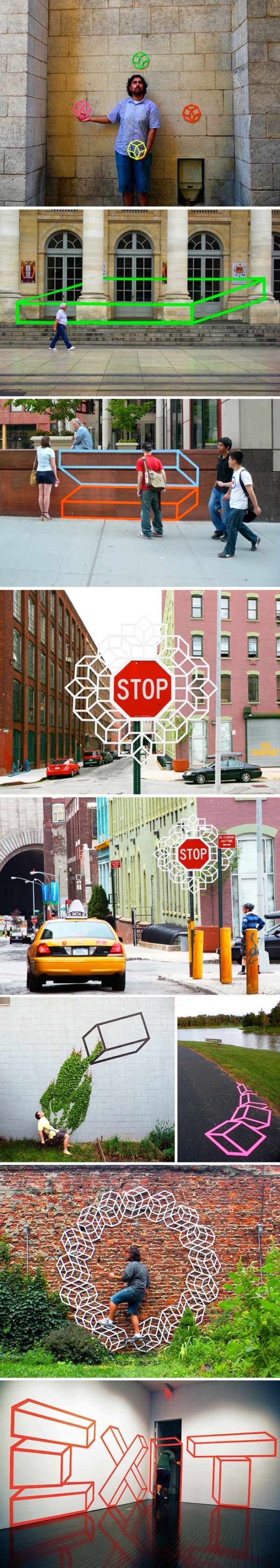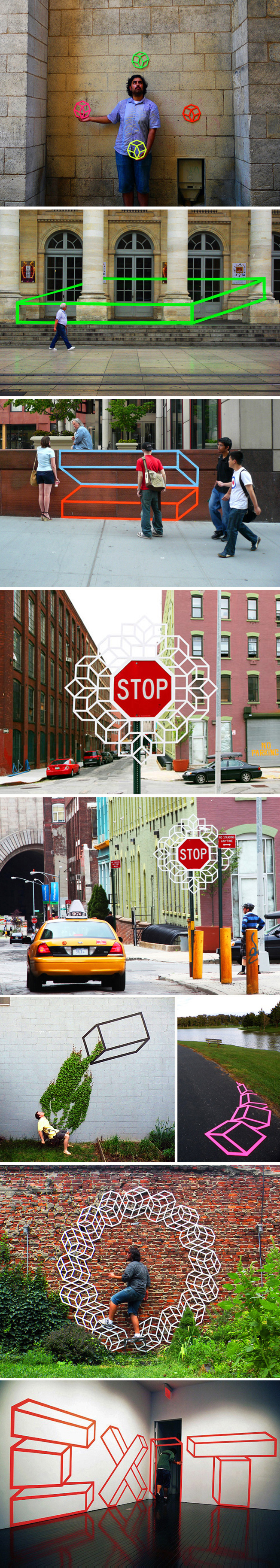 Aakash Nihalani vient de New York et crée des « trompe l’oeil géométriques en 3D » afin de révéler la beauté urbaine d’une ville.