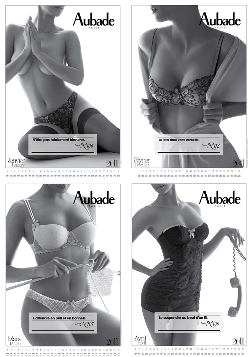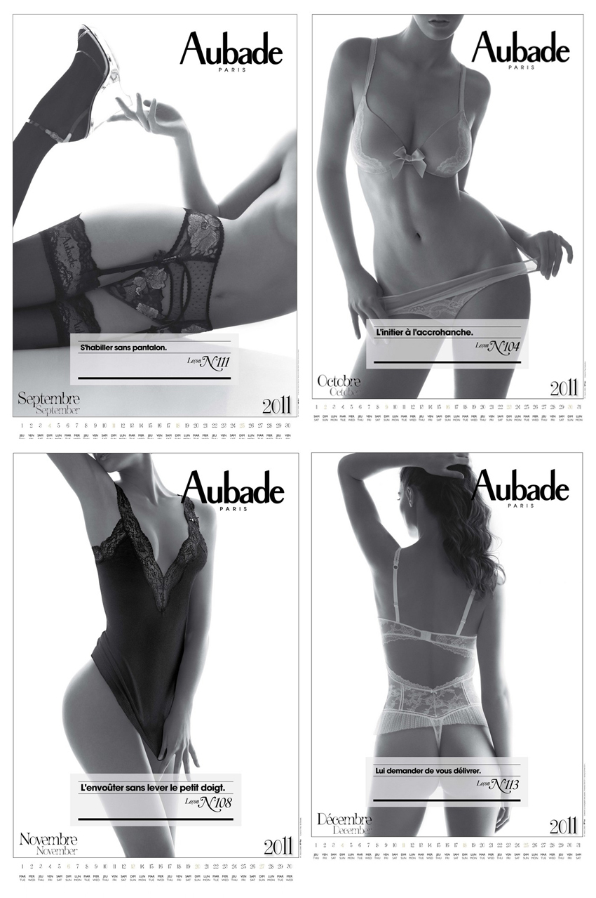 Découvrez le nouveau calendrier Aubade pour cette édition 2011, avec de nouvelles leçons de séduction, selon l’oeil du photographe Hervé Lewis.