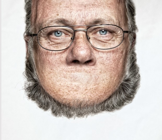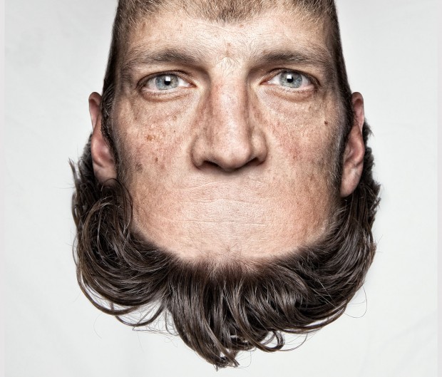 Pour le projet, “Head on top”, il réalise des portraits où les visages sont inversés, le menton prend la place du haut du crane. Et l’inverse, le front et les cheveux à la place du cou.
