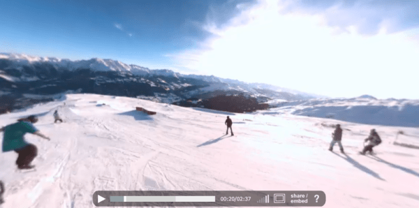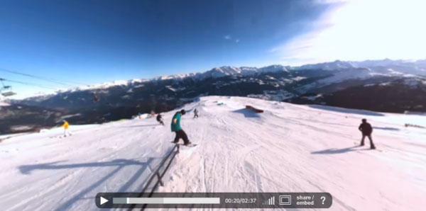 Pour les sports d’hiver de la saison prochaine, Yellow Bird a développé une étonnante démonstration en vidéo, dans la région de Laax, en Suisse. Du ski, du snowboard, des sauts freestyle aux manèges hors-piste… Cette vidéo se démarque des autres car elle a été filmée à 360°, ainsi vous pouvez changer l’angle de visionnage en bougeant la souris pendant la diffusion !
