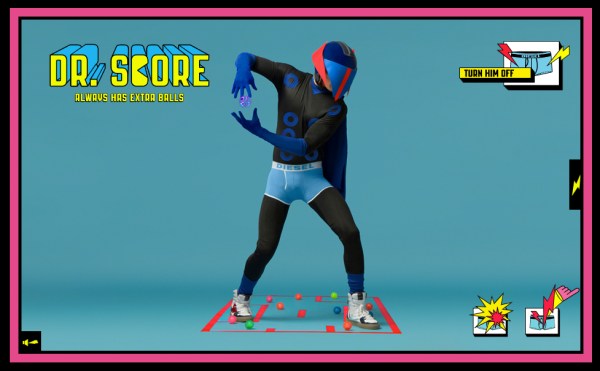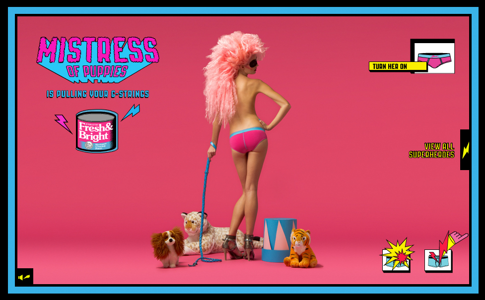 Dr Score, Iron Boy, Mistress of Puppies, Visible Woman, Mr Naker, Lalalady, Supperman, Miss Dismiss sont des super-héros avec des supers-pouvoirs, lançant des rayons lasers à partir de leur boxer.