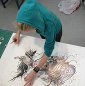 DEBRA HAMPTON est une artiste américaine. Son travail a porté sur différents supports non conventionnels et sur les questions de matières premières, de l’identité et de l’appropriation. Elle est surtout connue pour ses portraits mixtes en collage mashup qui sont créés à partir de 1000 découpes de magazines, d’encre éclaboussée, et de formes en pointillé. La série de portraits sculptés est créee par des objets tels que des coiffures, talisman, et d’armure 3 dimensions. Récemment, elle a été sélectionnée par le ministère des Transports à New York pour concevoir et illustrer une voie piétonne le long des quais de Brooklyn.