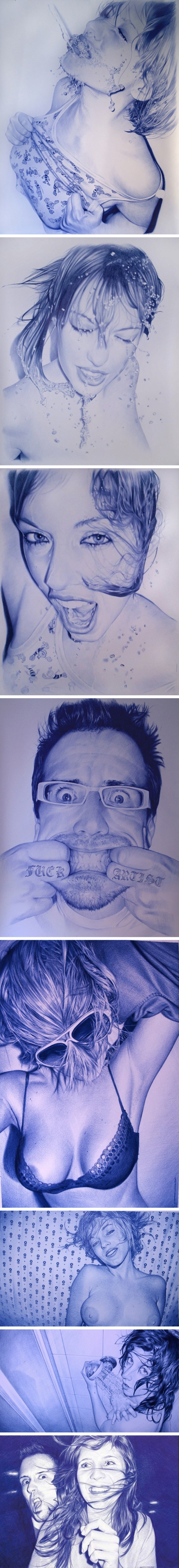 Né en Espagne, Juan Francisco Casas utilise uniquement le stylo à bille pour créer ses portraits très réalistes. Ancien peintre traditionnel, Juan a commencé les dessins en 2005 à partir de photographies de soirées avec ses amis.