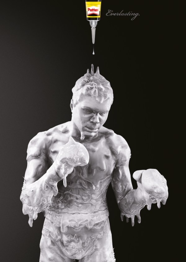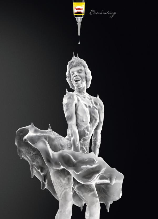 Everlasting… Voici la nouvelle campagne pour la marque de colle Pattex imaginée par l’agence de publicité DDB (Dusseldorf). Les figures de Marilyn Monroe, Muhammad Ali et Elvis Presley sont constituées de colle très forte et dureront toujours !