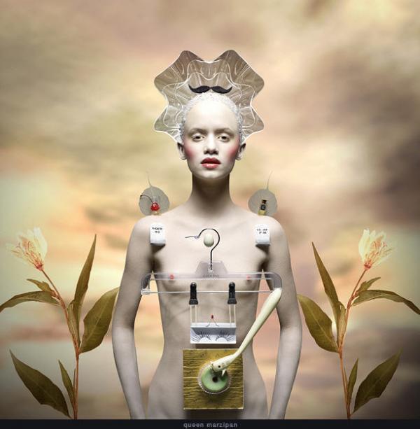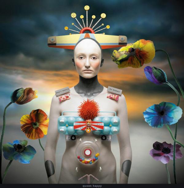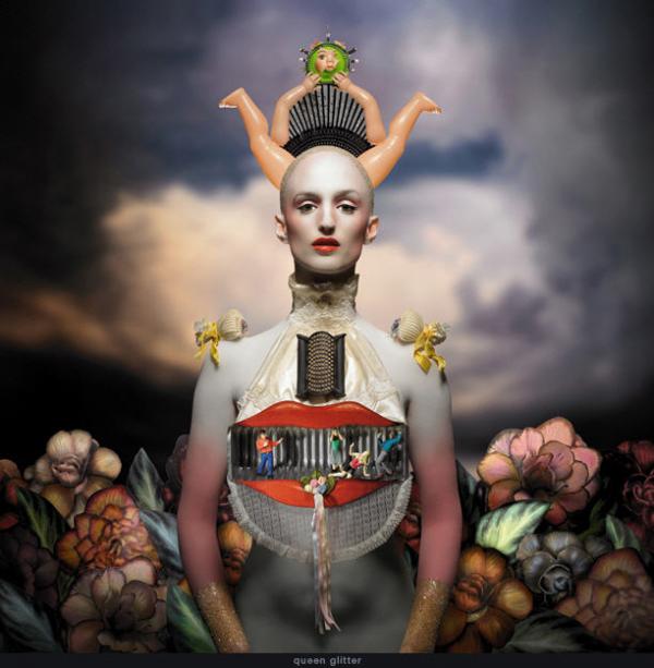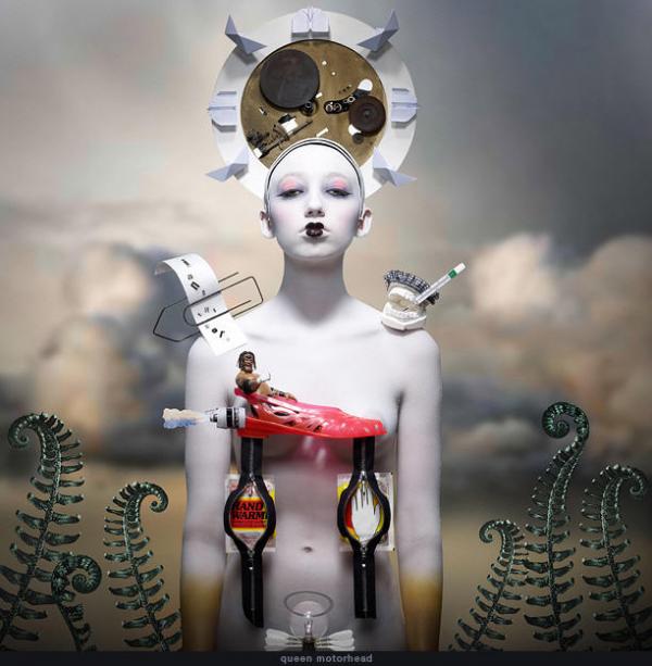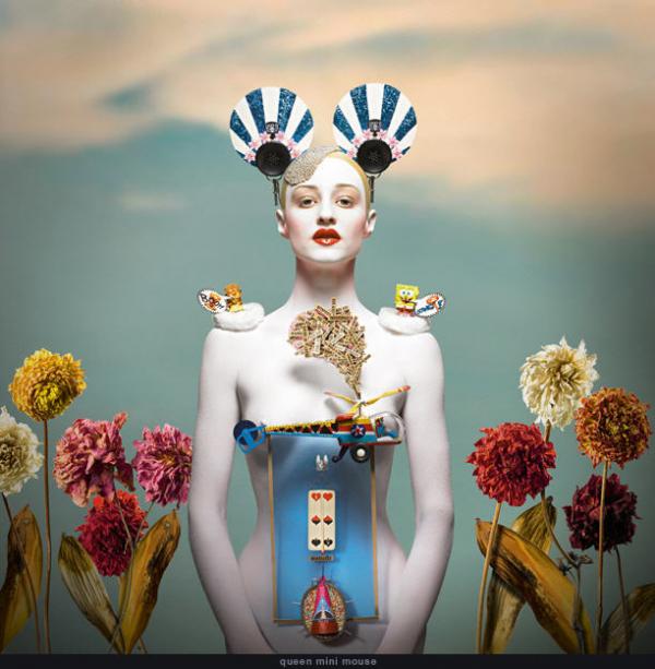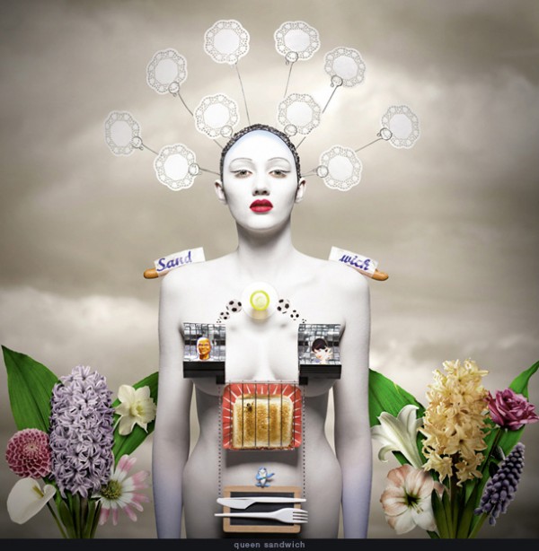 Ces photos absurdes et surréalistes sont composées d’objets et matériaux variés qui viennent habiller le corps de chaque personnage. L’arrière-plans réaliste, ne donne pas l’impression d’être artificiel…