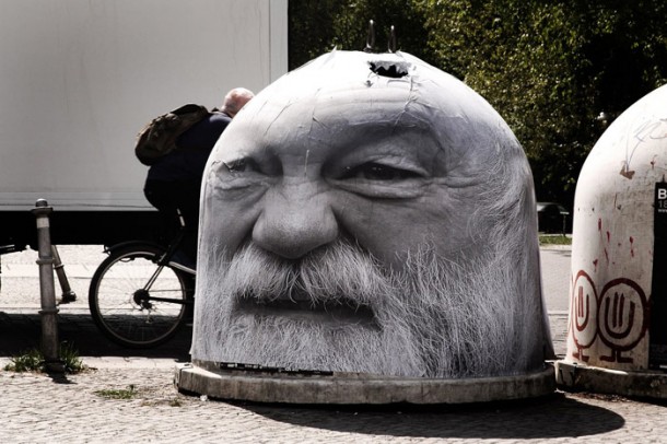 Le collectif d’artistes berlinois, Mentalgassi est issu du graffiti et du street-art. Ils ont décidé un jour d’utiliser la technique du collage pour transformer des objets urbains en visages humains s’intégrant dans la ville :