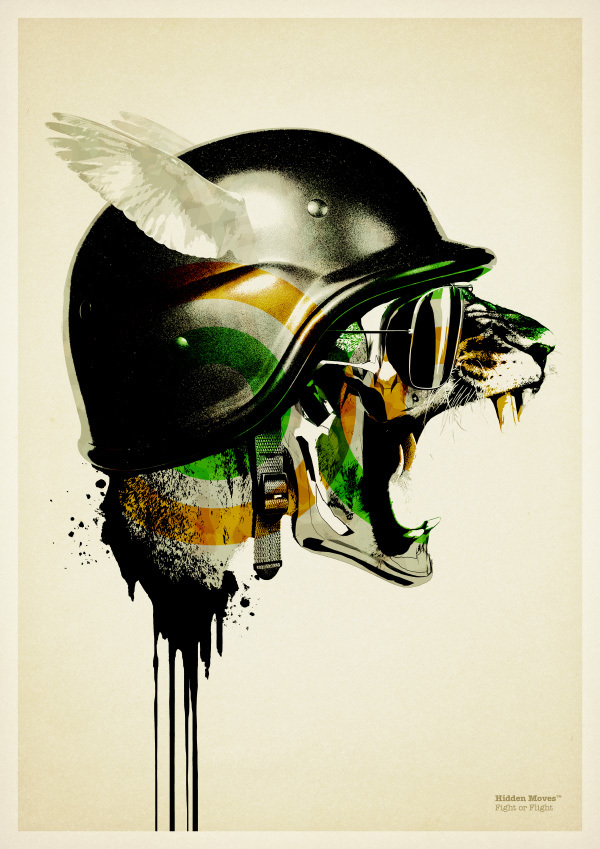 Voici le travail d’Hidden Moves (Rhys Owens), un graphiste et illustrateur du sud du Pays de Galles au Royaume-Uni. Il travaille en numérique et manipule la photographie avec des modèles 3D. Ses influences sont l’art de rue, la musique, les films, les comics…