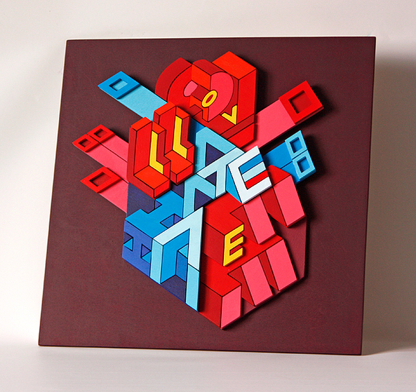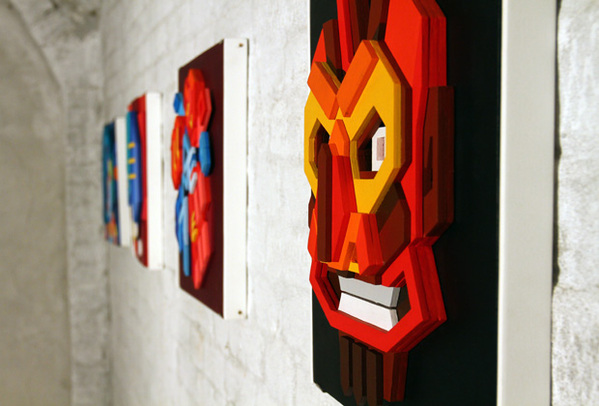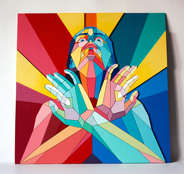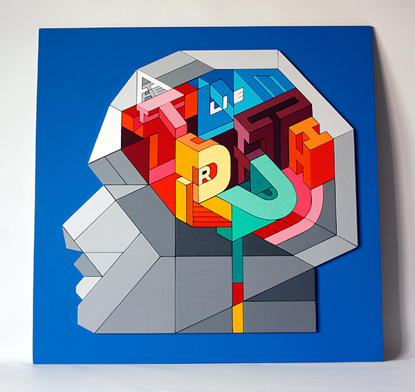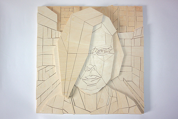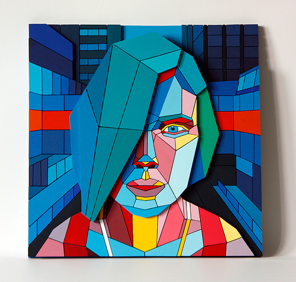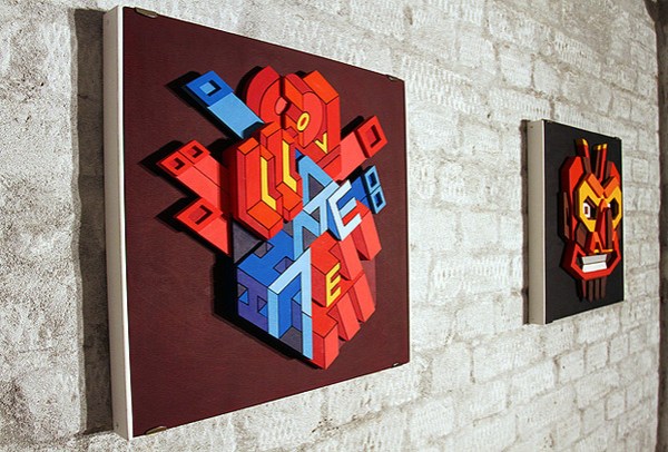 Aske alias Sicksystems est un artiste-graphiste basé à Moscou. Il a commencé sa carrière artistique en 2000 en tant que graffeur puis il a bifurqué sur des développements ultérieurs de son style : le design graphique, la typographie et l’illustration. SickSystem a créé une série de six œuvres en contreplaqué, qui ont été exposées la semaine dernière au Faces and Laces Street Culture Show à Moscou. Il a passé un mois et demi à travailler dessus. Il a d »abord fait des images vectorielles basées sur son croquis, puis sculpter en détails sur du contreplaqué en utilisant une scie, puis poncer et lisser.