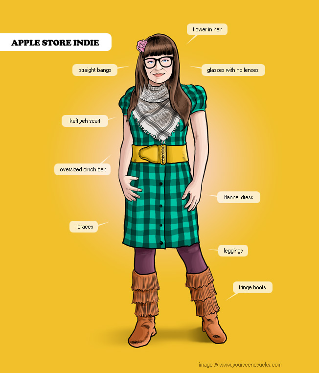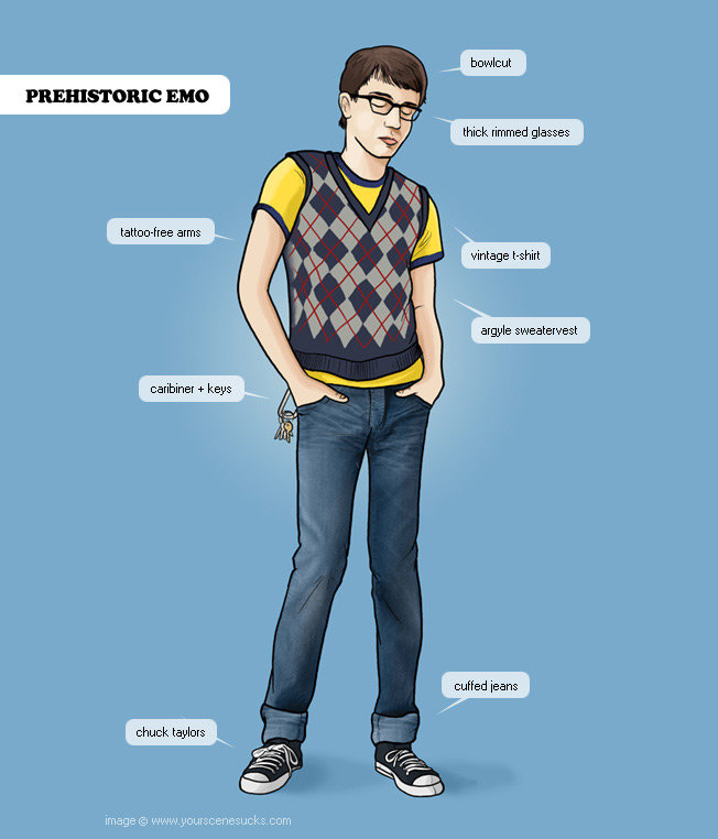 Your Scene Sucks est une série d’illustrations qui vous permettra de découvrir les différents styles vestimentaires : hipsters, punks, emos, indies, post-rockers, nerds, hardcore-geeks… Les personnages de Your Scene Sucks sont réalisés par Rob Dobi, qui les a publiés sous forme de livre.