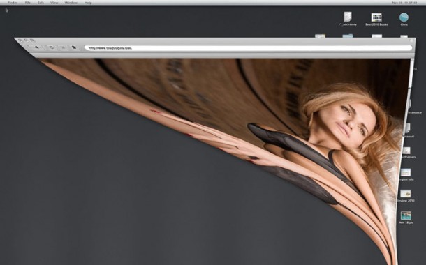 Des annonces originales pour la chaîne Playboy TV, les visuels utilisent subtilement et créativement l’effet génie du logiciel Mac OS X pour cacher les filles dénudées en photo.