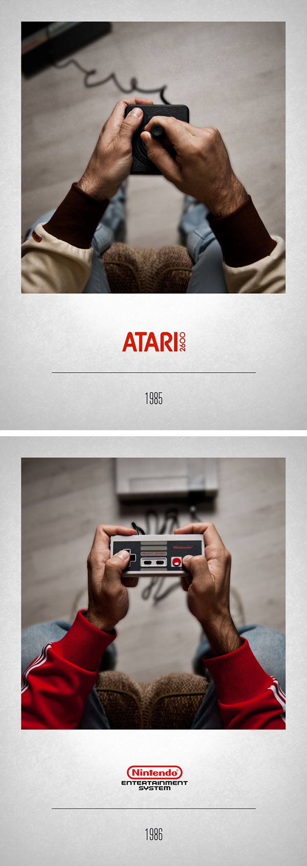 Javier Laspiur est un Directeur Artistique, Typographe, Graphiste, Illustrateur, photographe qui a réalisé une série photo « Controllers » illustrant les dates auxquelles il a goûté aux consoles, à partir de 1983.